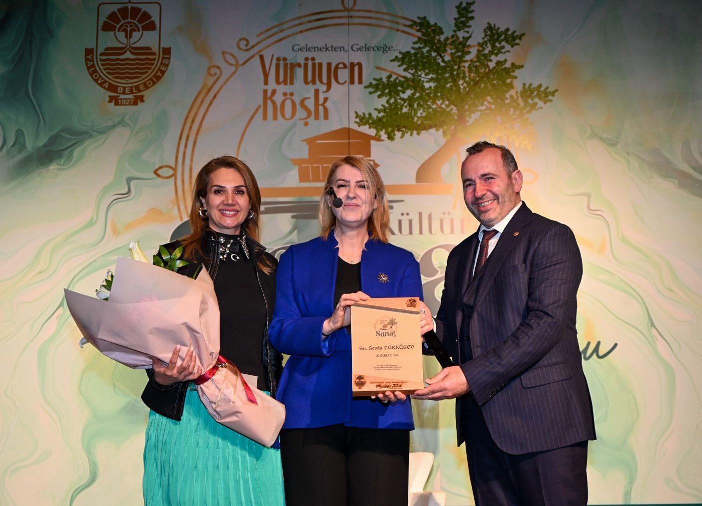 Söyleşide aile yapısının toplumun temel taşı olduğuna dikkat çeken Türküsev, aile içinde sağlıklı iletişim, sevgi ve anlayışın toplumsal dayanışmayı nasıl artırabileceğini anlattı. Aynı zamanda medyanın aile ilişkilerine olan etkilerini de ele alarak, bilinçli medya kullanımının aile bağlarını güçlendirebileceğine vurgu yaptı. Program sonunda Sevda Türküsev katılımcılardan büyük alkış aldı. Sevda Türküsev, Yalova Belediye Başkanı Mustafa Tutuk ve eşi Gökşen Tutuk’u sahneye kendisi davet etti. Çiçek ve plaket takdimi yapan Mustafa Tutuk “ Sevda Türküsev’e bu güzel akşam için çok teşekkür ediyoruz. İyi ki geldiniz, Yalovalı vatandaşlarımıza bilgi dolu eşsiz bir gece sundunuz” şeklinde konuşarak düşüncelerini dile getirdi.