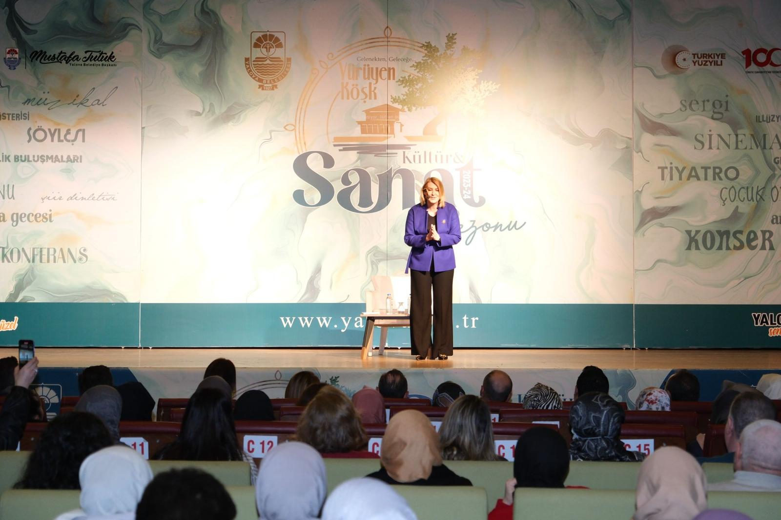 Yalova Belediyesi tarafından düzenlenen “Yürüyen Köşk Kültür Sanat Sezonu”nun dün akşamki konuğu Sevda Türküsev oldu. Gazeteci, iletişim uzmanı, yazar ve aynı zamanda sunucu olan Sevda Türküsev ‘ Medya-Aile Toplum’ başlıklı söyleşisiyle Yalovalıları bilgi dolu bir muhabbetle buluşturan Türküsev, etkinlikte önemli konulara vurgu yaptı.