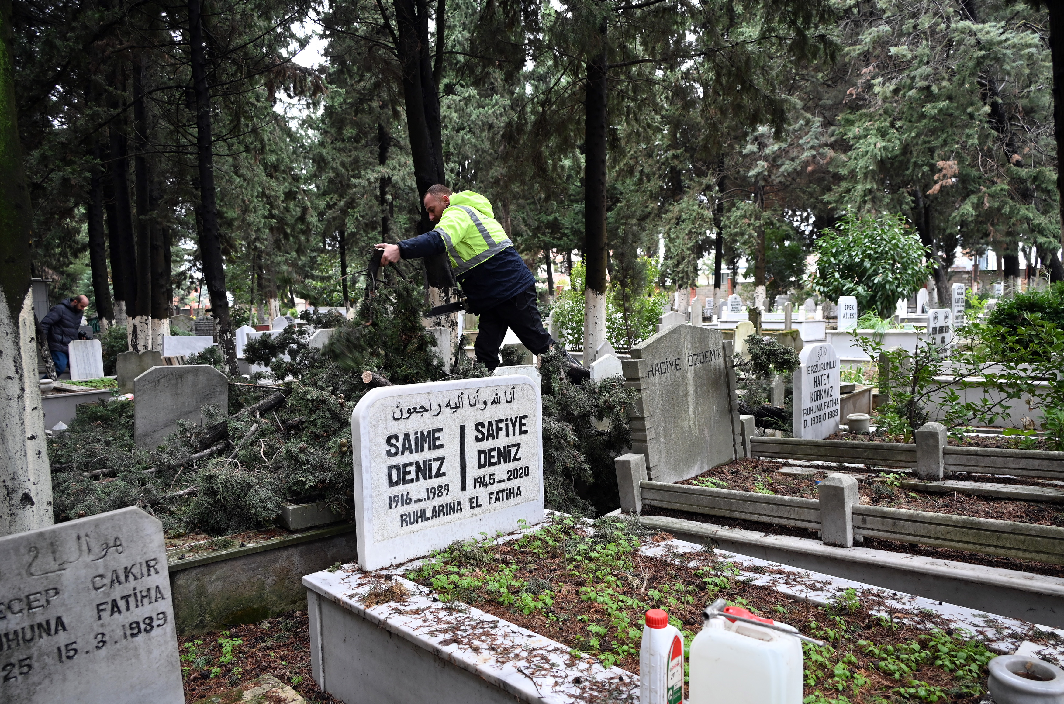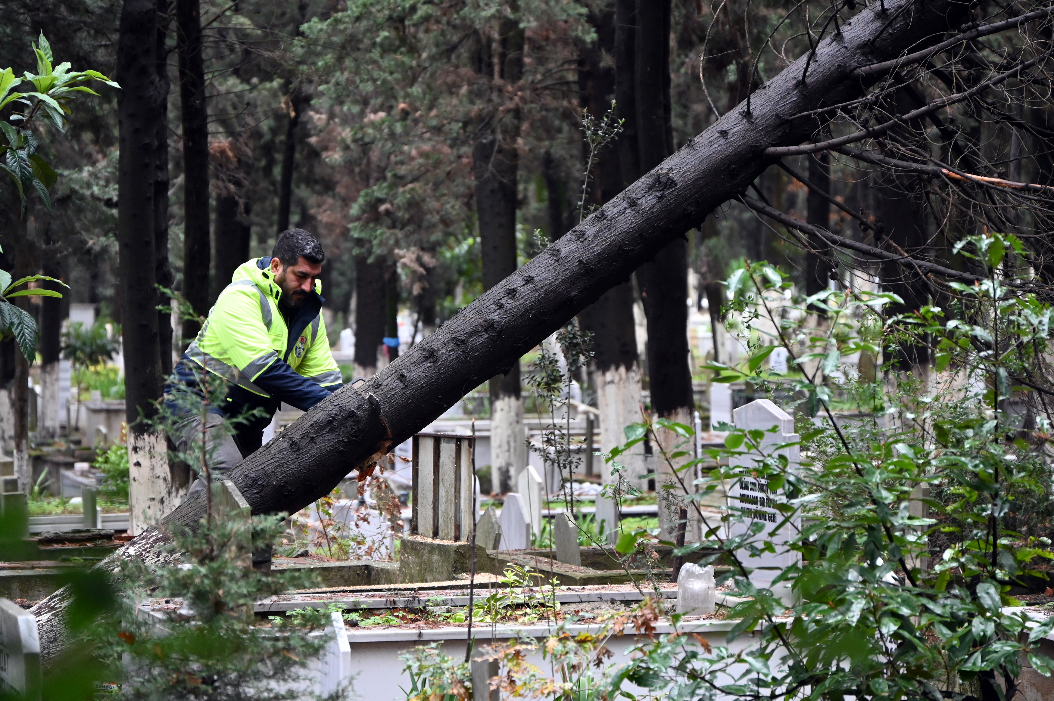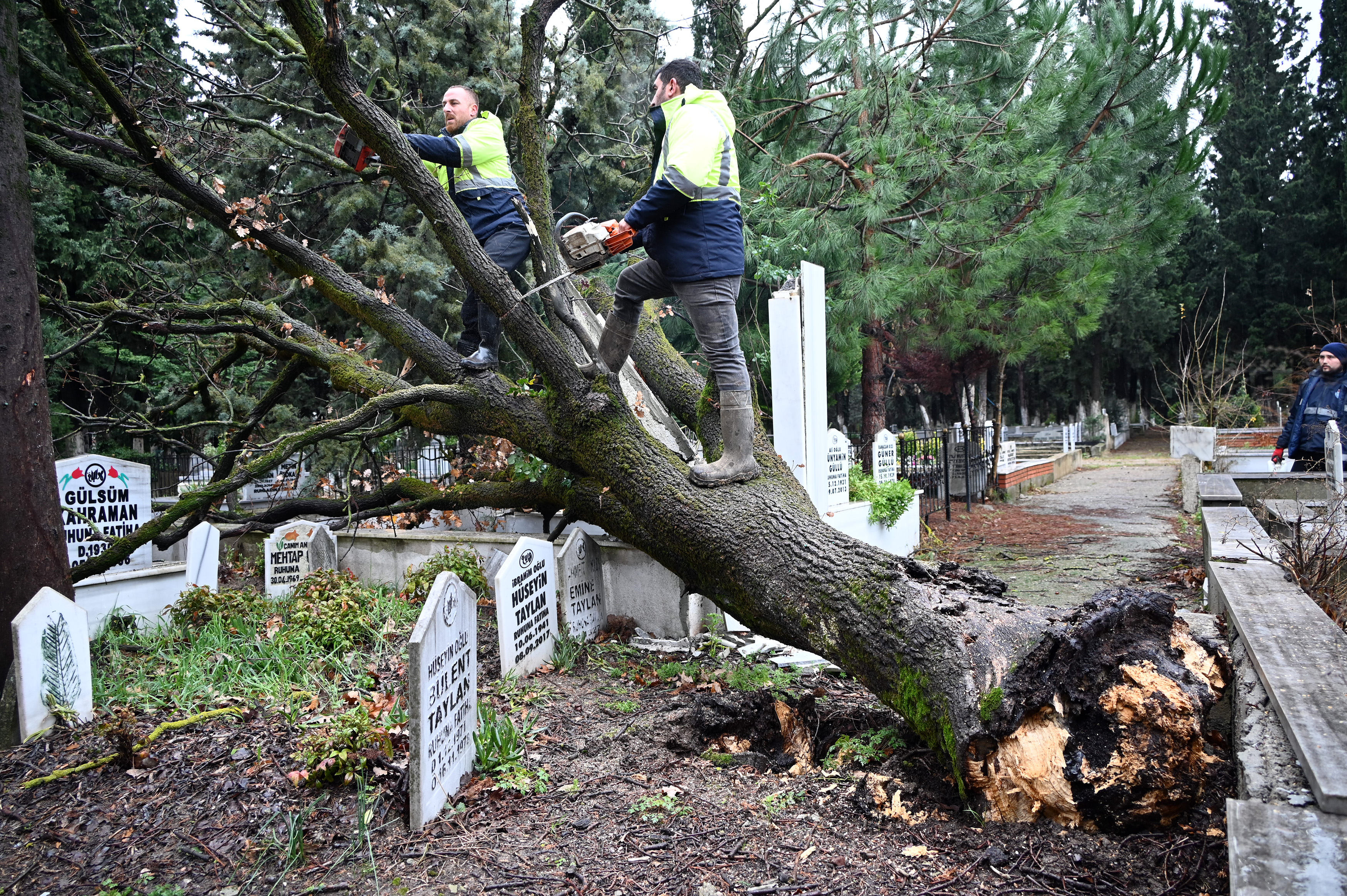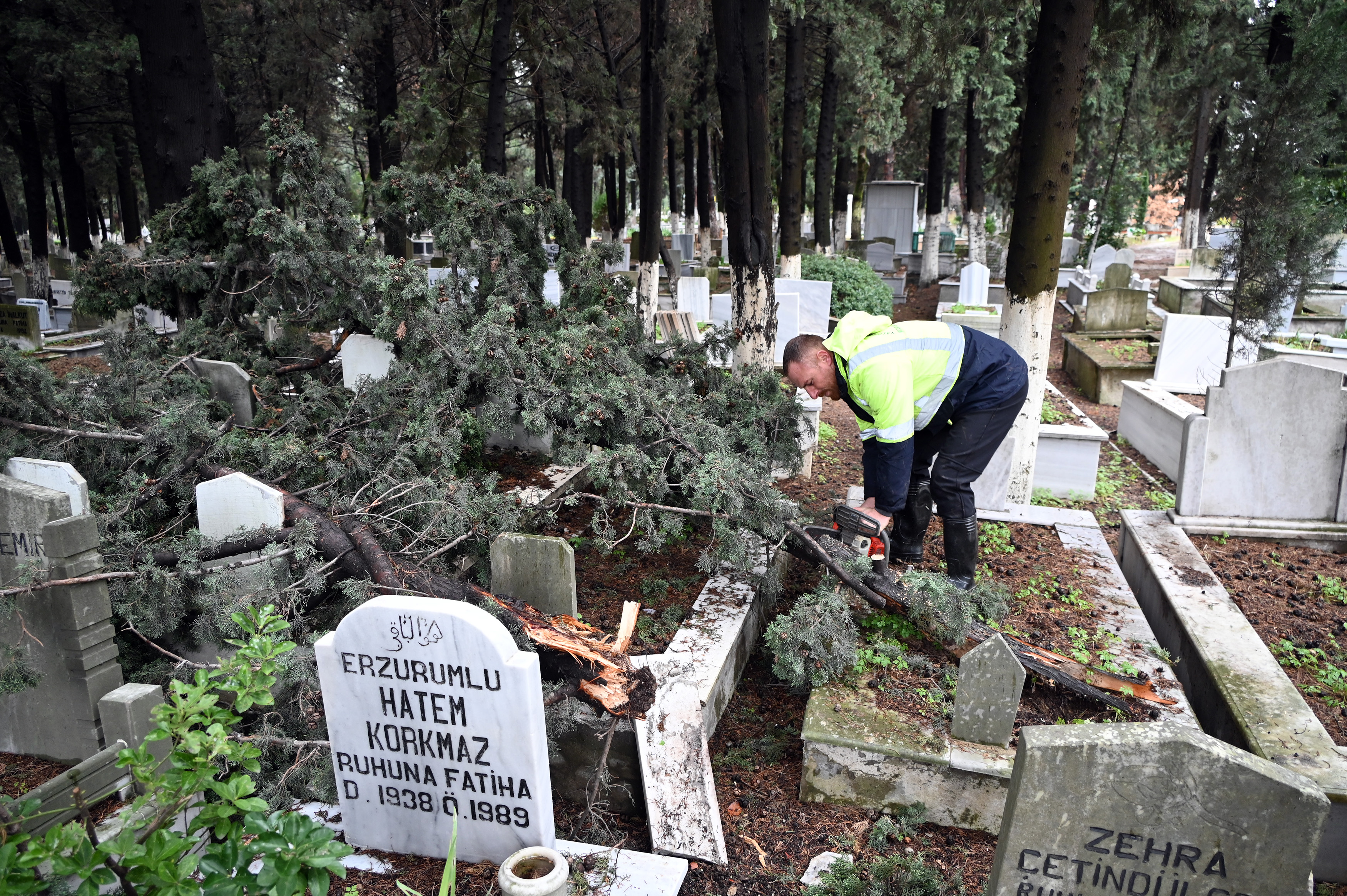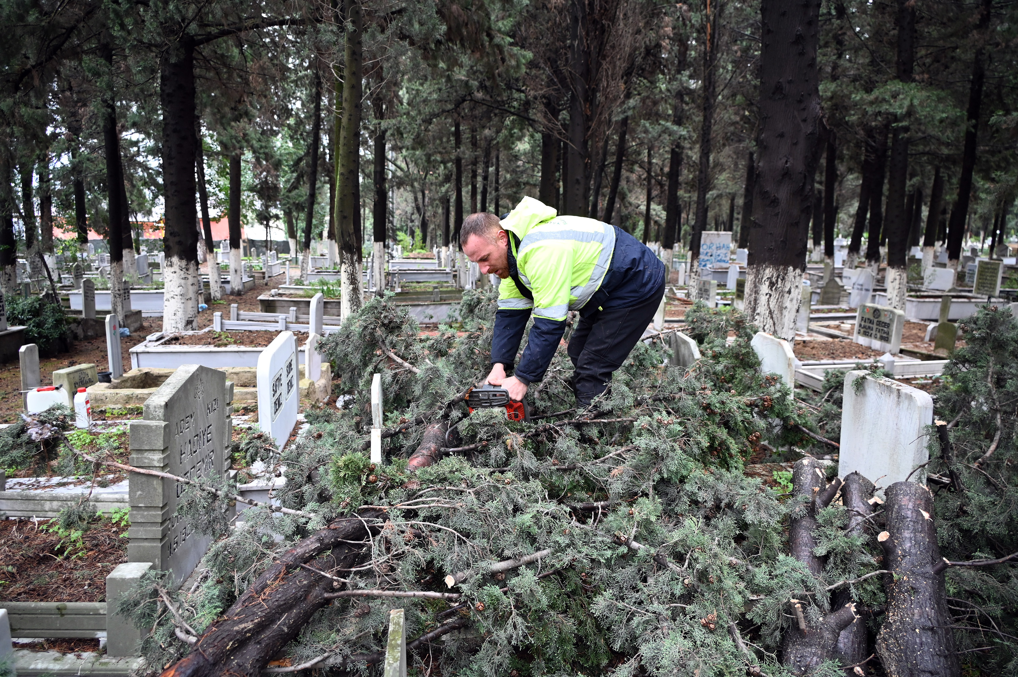 Yaşanan olumsuzlukların ardından Yalova Belediyesi Mezarlıklar Müdürlüğü ekipleri, zarar gören alanlarda hızla çalışma başlattı. Devrilen ve risk oluşturan ağaçlar kontrollü şekilde yerinden kaldırılırken, kabristan çevresinde güvenliği sağlamak amacıyla gerekli tedbirler alındı.