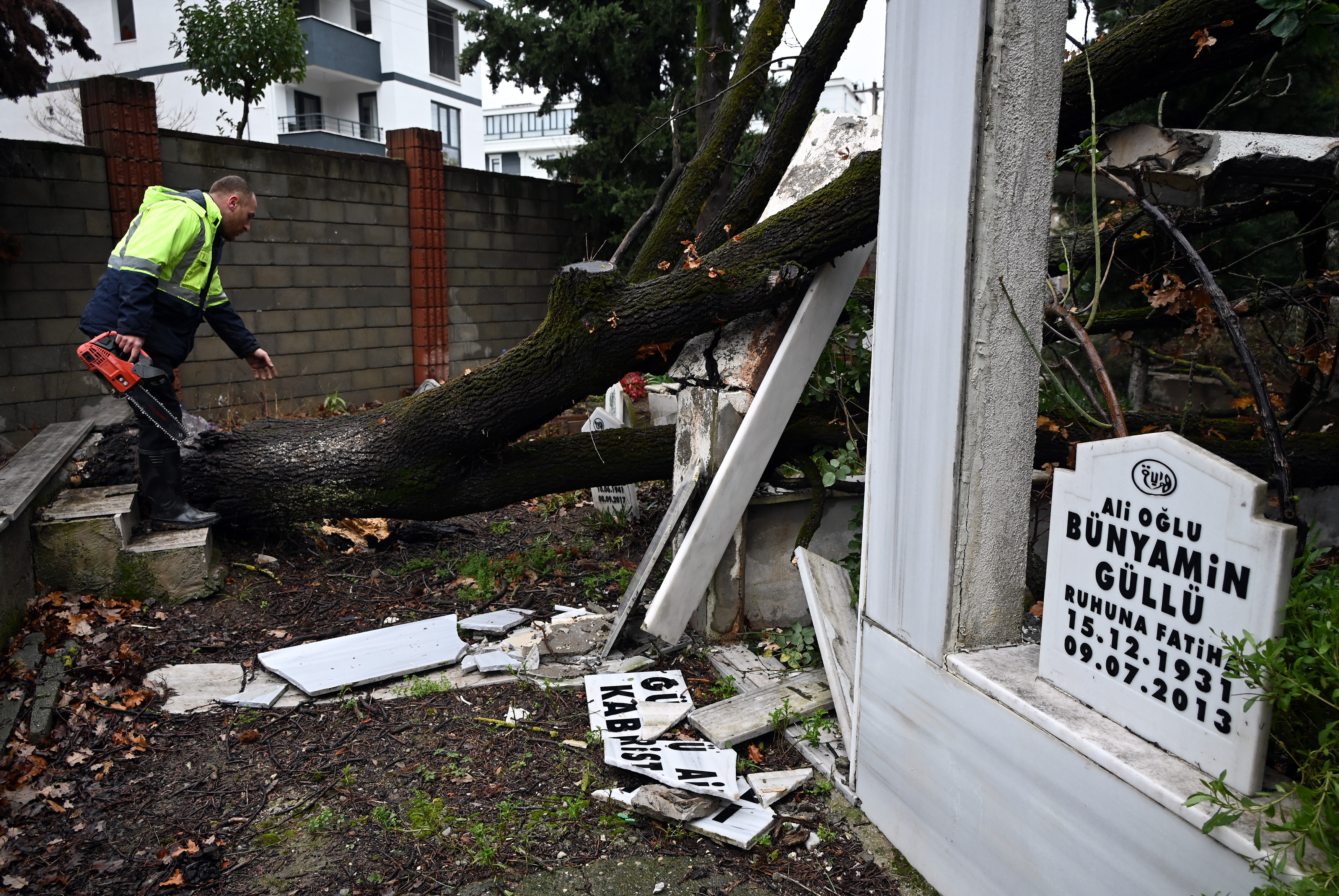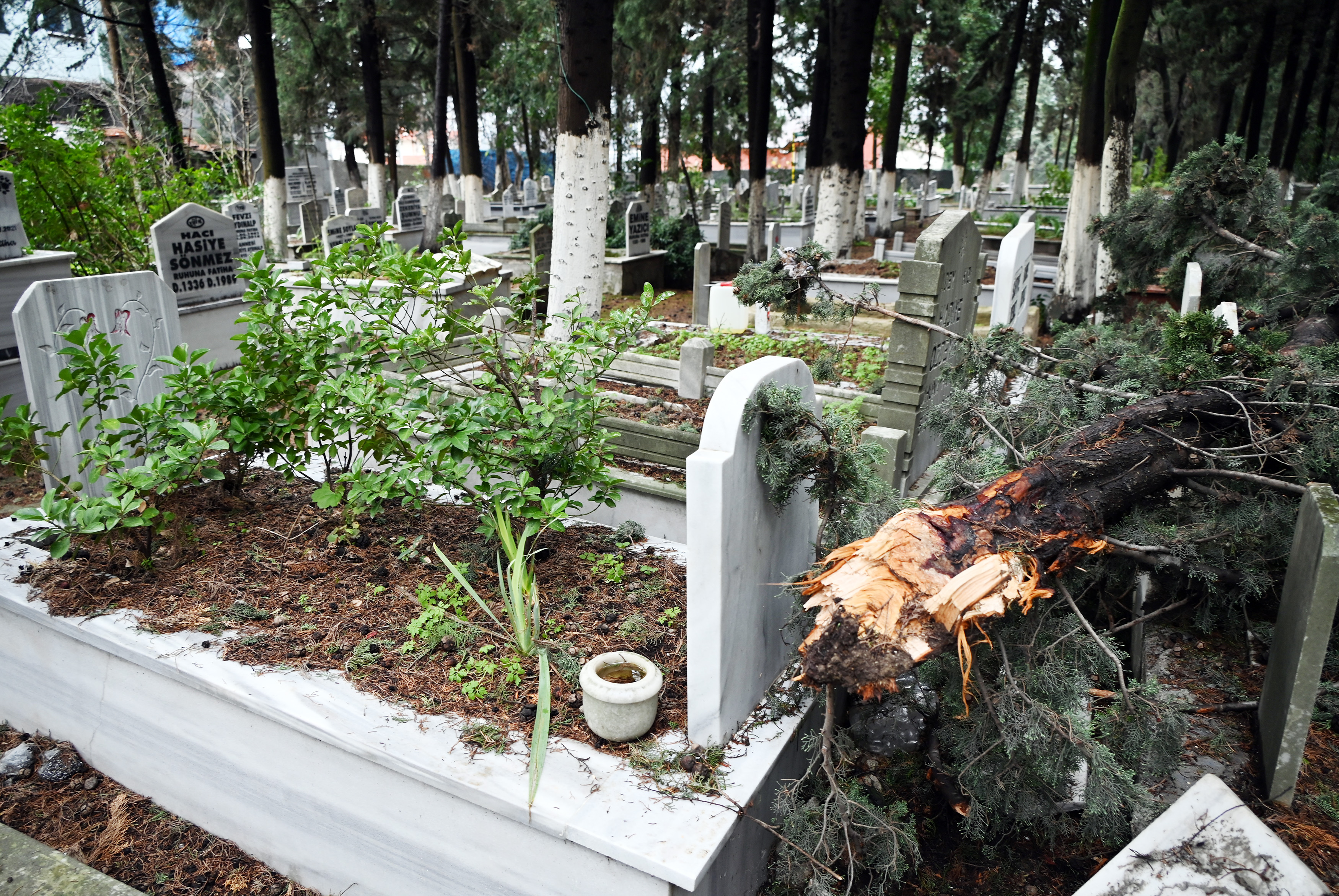 ŞİDDETLİ FIRTINA ŞEHİR MEZARLIĞI’NI DA ETKİLEDİ