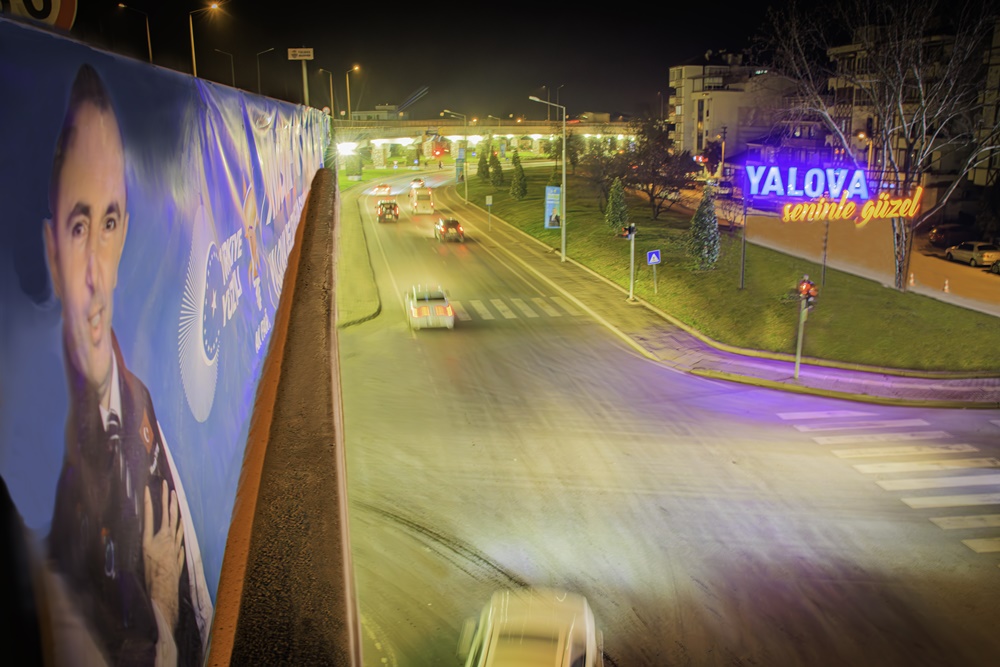 Yalova Belediyesi Fen İşleri Müdürlüğü tarafından Tanomi Meydanı’nda ışıklandırma çalışması yapıldı.
