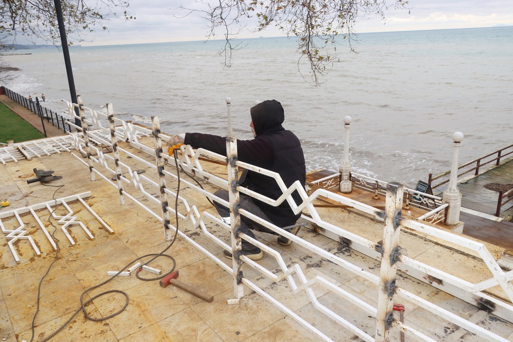 Yalova Belediyesi ekipleri tarafından başlatılan çalışmayla şehrimizin önemli simgelerinden biri olan Yürüyen Köşk’ün terasında ile bahçesinde bulunan korkulukların bakım ve onarımları yapılıyor.