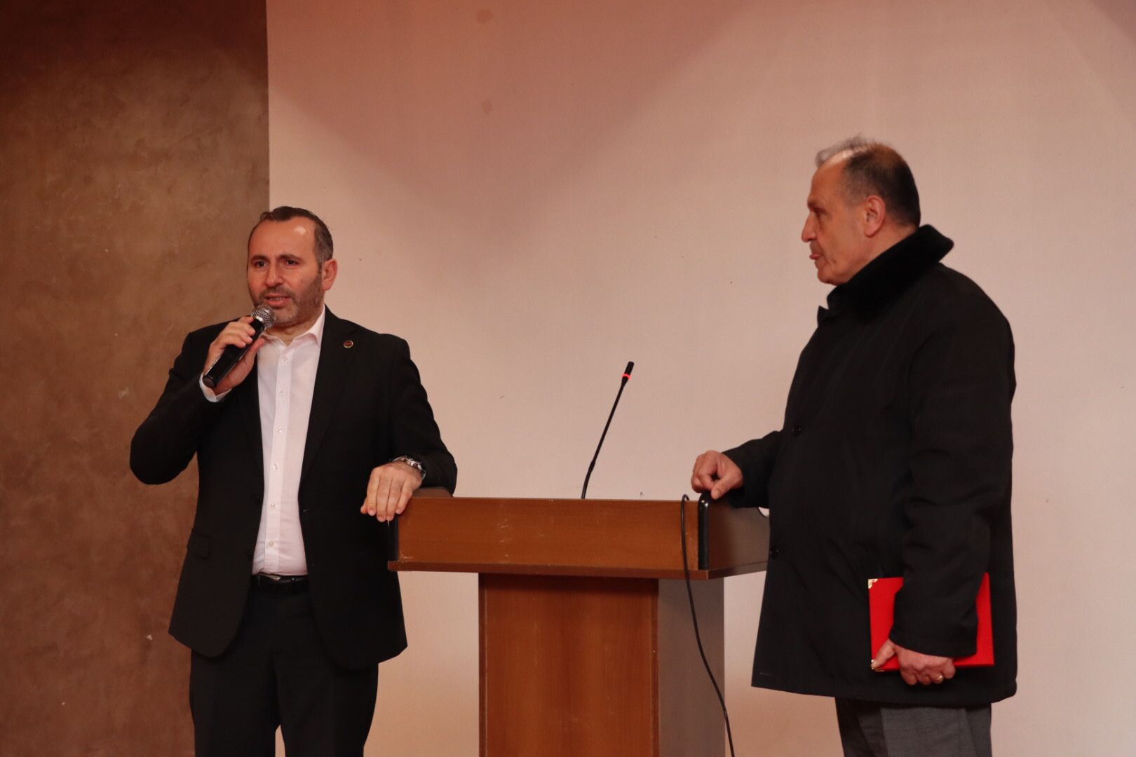 Depremzedelere psikolojik destek programında Başkan Tutuk’a depremzedelere olan katkısı nedeniyle plaket sunuldu. Tutuk’a plaketini, MHP İl Başkanı Ahmet İhsan Güldoğan takdim etti.