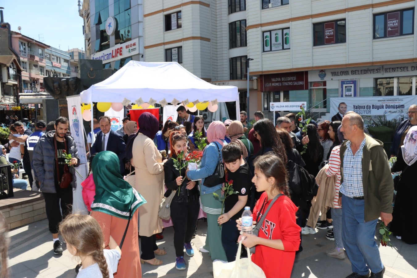 Yalova Belediyesi, Anneler Günü dolayısıyla Uğur Mumcu Kültür Merkezi önünde çiçek dağıtımı gerçekleştirdi.