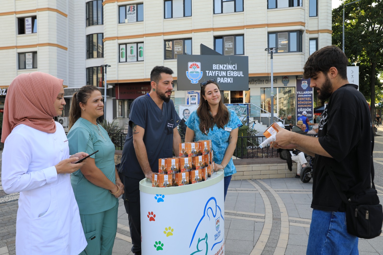 Yalova Belediyesi Veteriner İşleri Müdürlüğü, 4 Ekim Hayvanları Koruma Günü nedeniyle Benzinci Tayfun Erbul Parkı önünde kurulan stantta mama dağıtımı gerçekleştirdi.