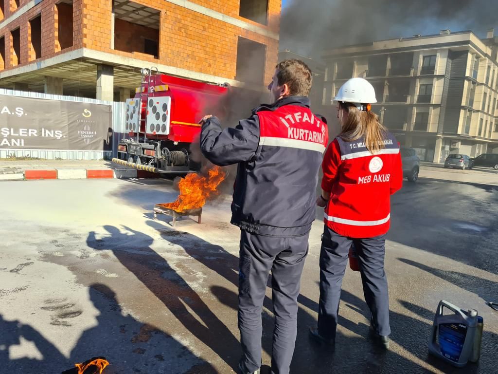 Eğitim alan katılımcılara KKT (Kuru Kimyevi Tozlu Tüp) kullanımı hakkında bilgiler verilirken ayrıca yangın önleme, ilk müdahale, yangın çeşitleri ve çeşitlerine göre nasıl davranılması gerektiğine yönelik uygulamalı olarak eğitim verildi.