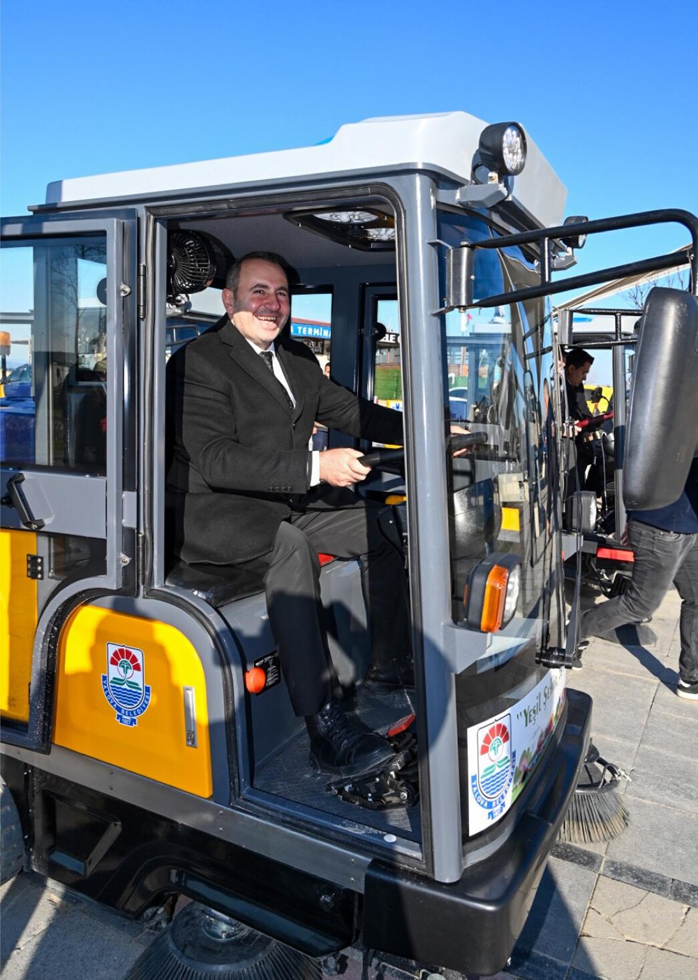 Daha temiz bir Yalova için çalışmalarını sürdüren Yalova Belediyesi Temizlik İşleri Müdürlüğü araç filosuna 3 adet zemin süpürme makinesi ekledi. Yeni araçları inceleyen ve hakkında bilgiler alan Başkan Tutuk, zemin süpürge makinesinin direksiyonuna geçerek araçları test etti. Başkan Tutuk’a, Yalova Belediye Başkan Yardımcıları Fatih Şahin, Ahmet Sarıduman, Volkan Dadaloğlu ile birlikte birim müdürleri de eşik etti.