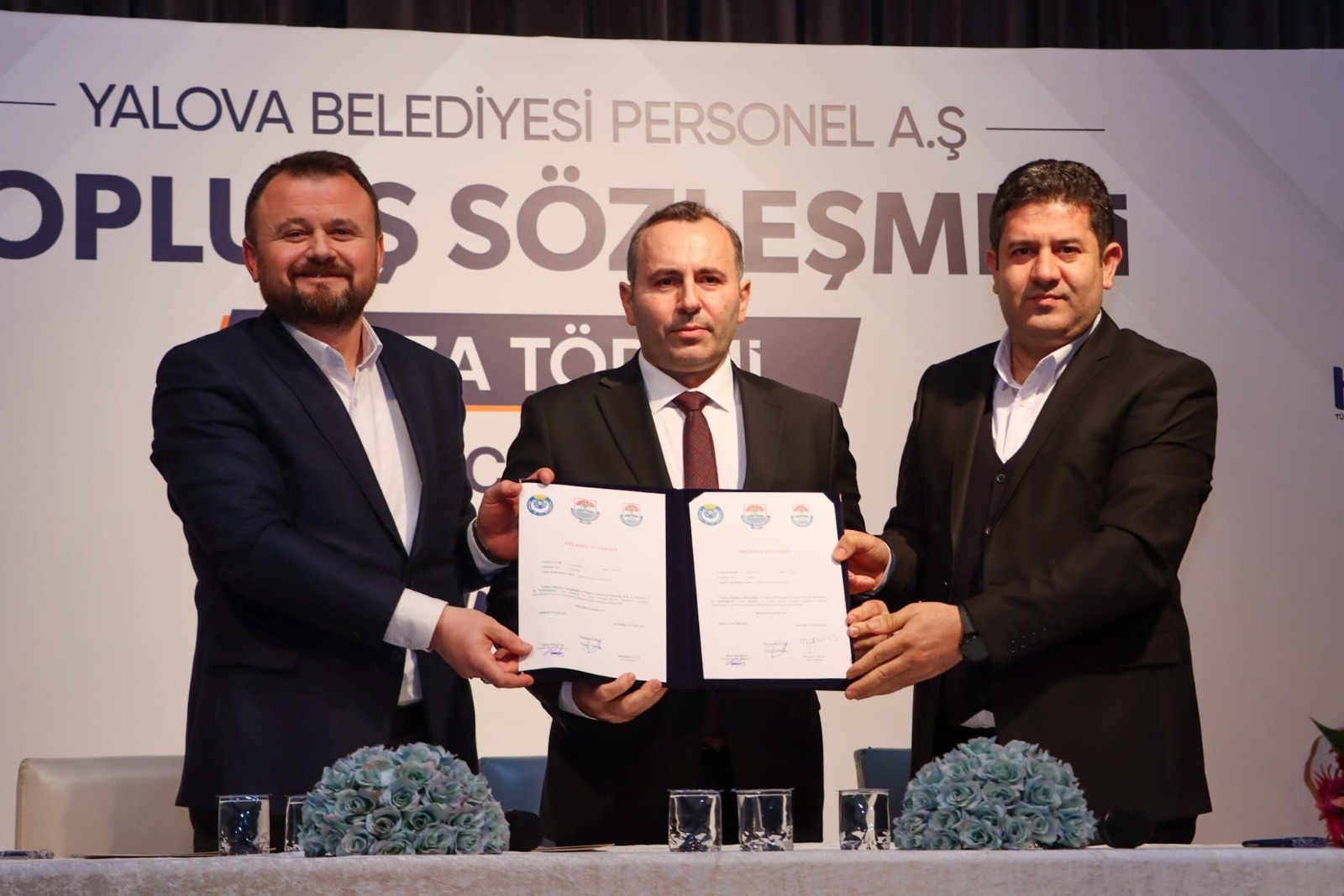 Yalova Belediyesi bünyesinde yer alan Personel A.Ş. çalışanlarını ilgilendiren Toplu İş Sözleşmesi görüşmeleri sona erdi. Yapılan müzakereler sonucu Toplu İş Sözleşmesi personelin de katılımıyla Yalova Belediyesi Raif Dinçkök Kültür Merkezi’nde Yalova Belediyesi ile Hizmet-İş Sendikası arasında imzalandı. Yalova Belediye Başkanı Mustafa Tutuk, yaptığı açıklamayla en düşük işçi maaşının 32 bin TL olduğunu bildirdi. Maaş zammı belediye işçileri tarafından büyük bir memnuniyetle karşılanırken, belediye çalışanları Başkan Mustafa Tutuk’u ayakta alkışladılar.