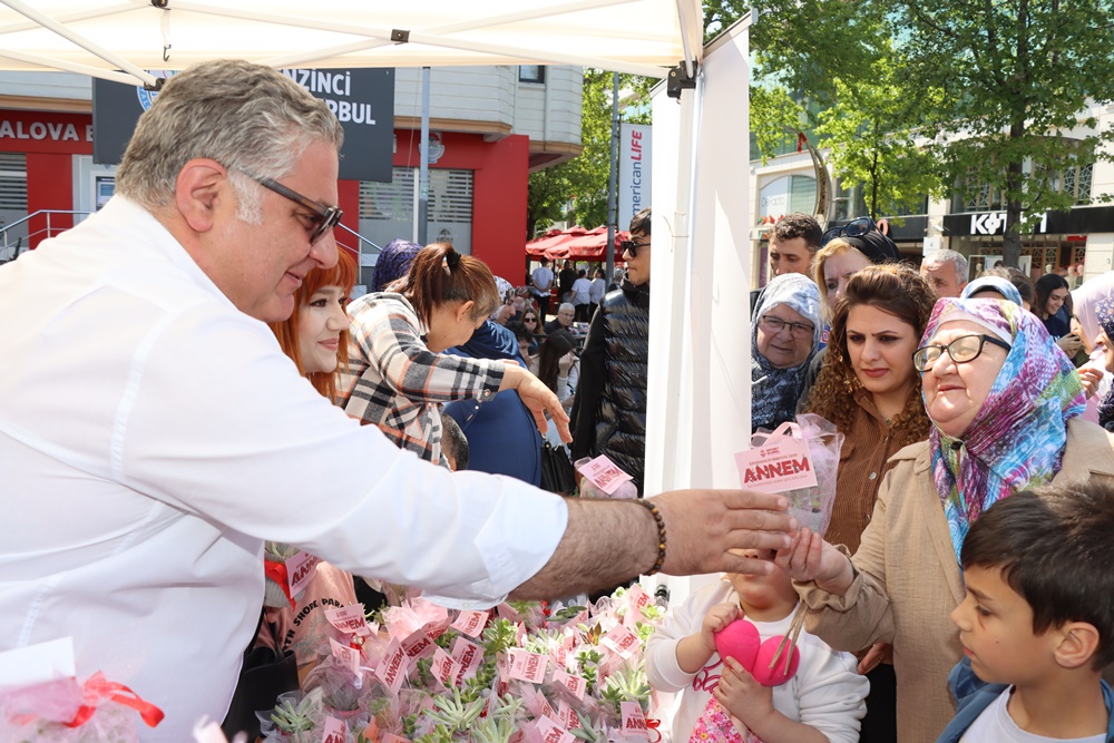 Yalova Belediye Başkanı Mehmet Gürel, Uğur Mumcu Kültür ve Sanat Merkezi önünde düzenlenen etkinlikte vatandaşlarla bir araya geldi ve annelerin bu özel gününü kutladı.