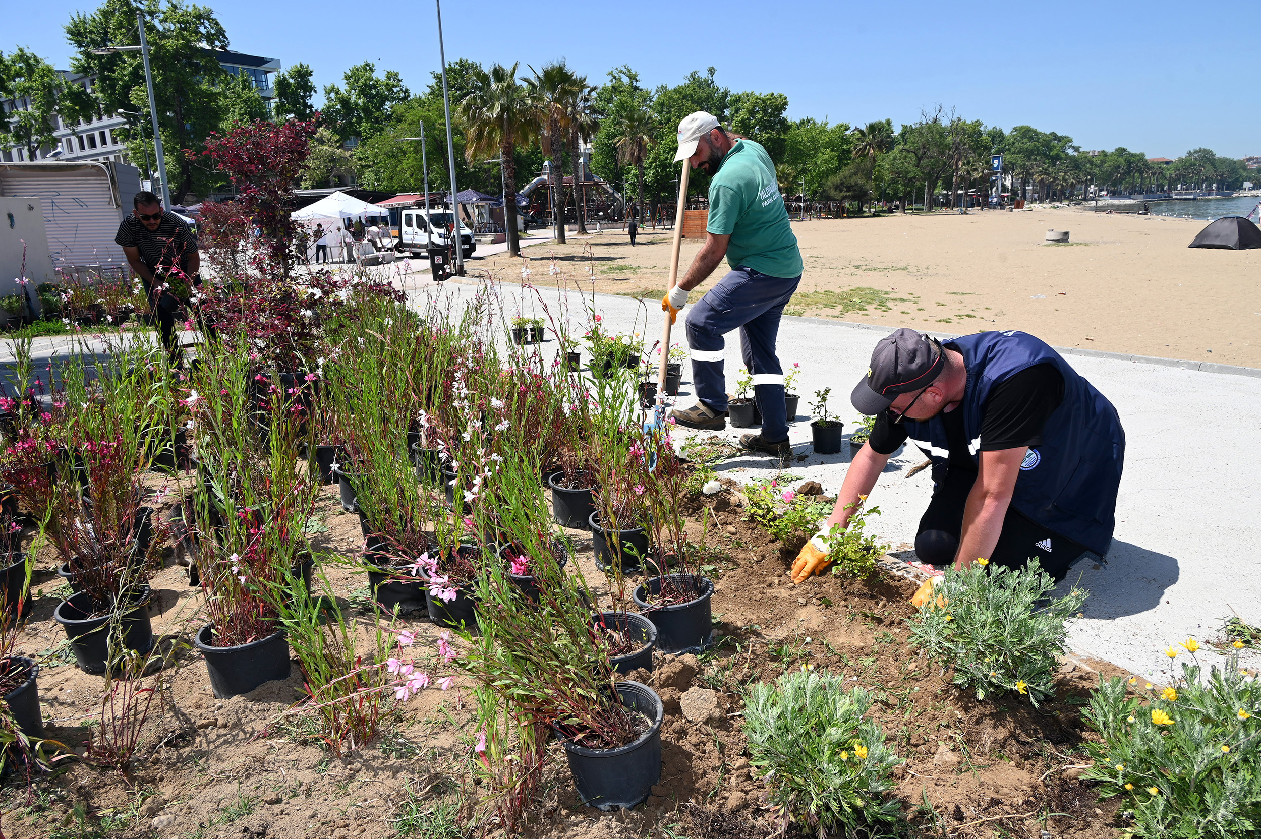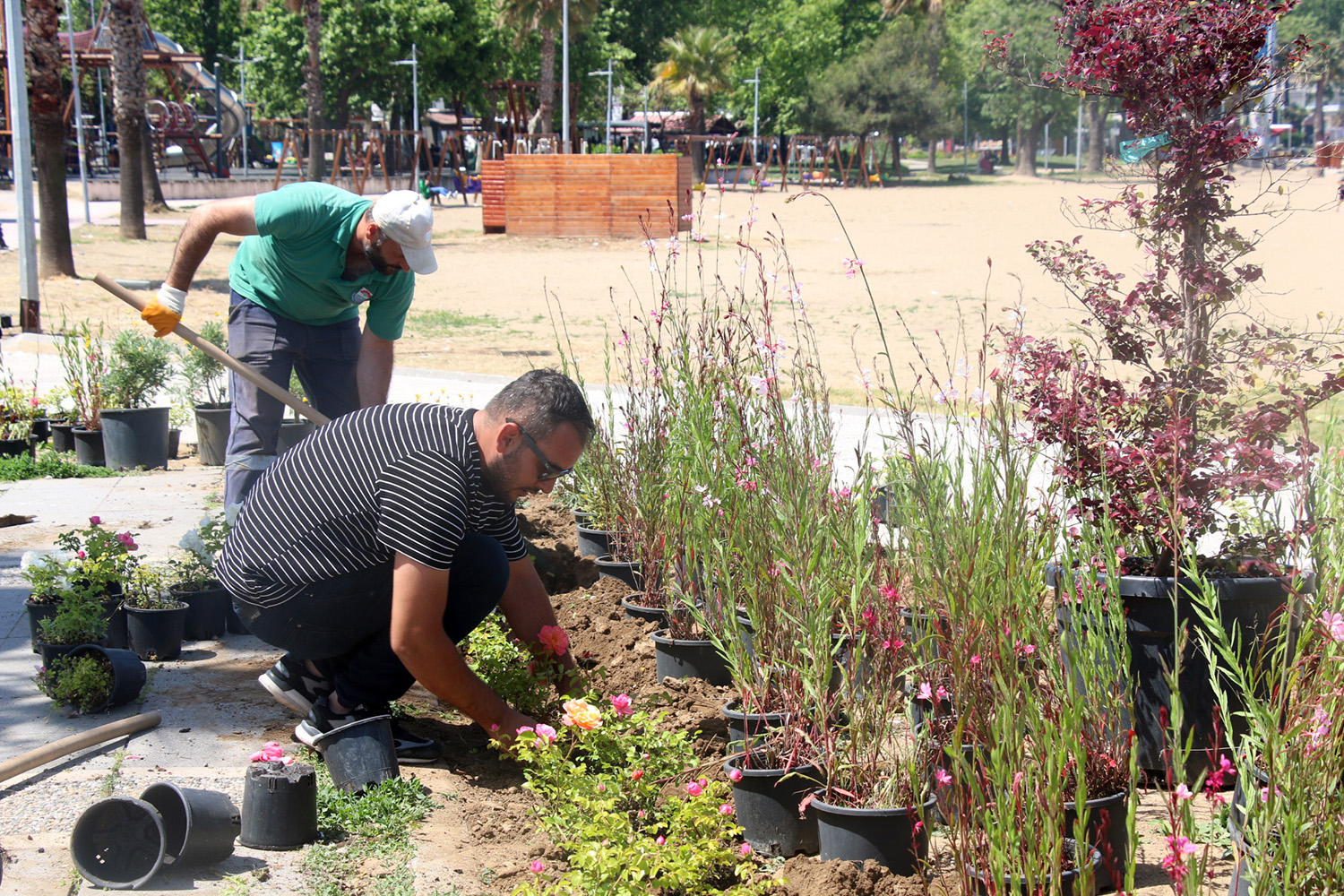 Park ve Bahçeler Birimi ekipleri de kent estetiğini artırmak amacıyla peyzaj çalışmalarına hız verdi. Akasya Plajı ve Şiir Yolu çevresinde yürütülen düzenleme çalışmalarında, belediyeye ait seralarda üretilen rengârenk çiçekler kullanılıyor. Öte yandan Park ve Bahçeler Birimi ekipleri, Dörtyol Tonami Meydanı’nda da çiçeklendirme çalışmalarını sürdürüyor.