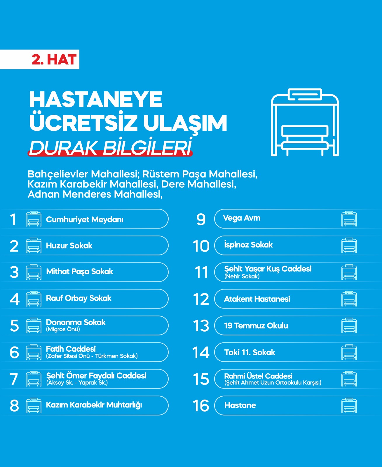 Bu hatlar sayesinde, tüm hemşerilerimiz mahallerinden aktarma yapmadan hastaneye ücretsiz şekilde ulaşma imkânına sahip olacak.