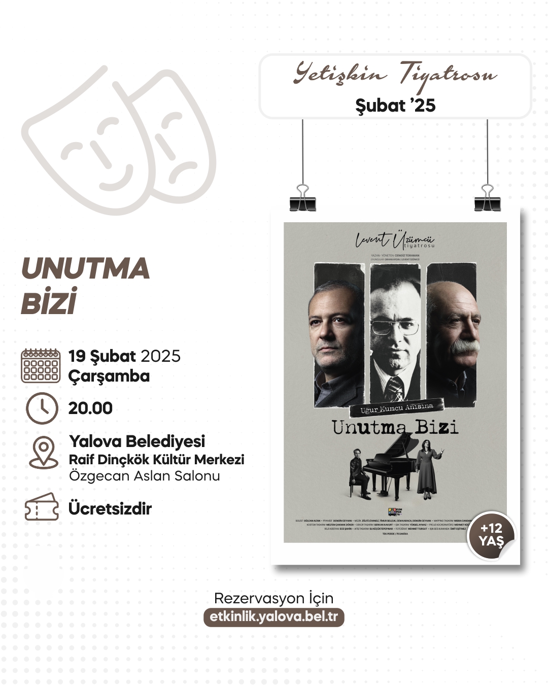Sanat ve kültür dolu bu etkinliklerle Şubat ayını renklendirecek olan Yalova Belediyesi, tüm Yalova halkını bu keyifli programlara katılmaya davet ediyor.