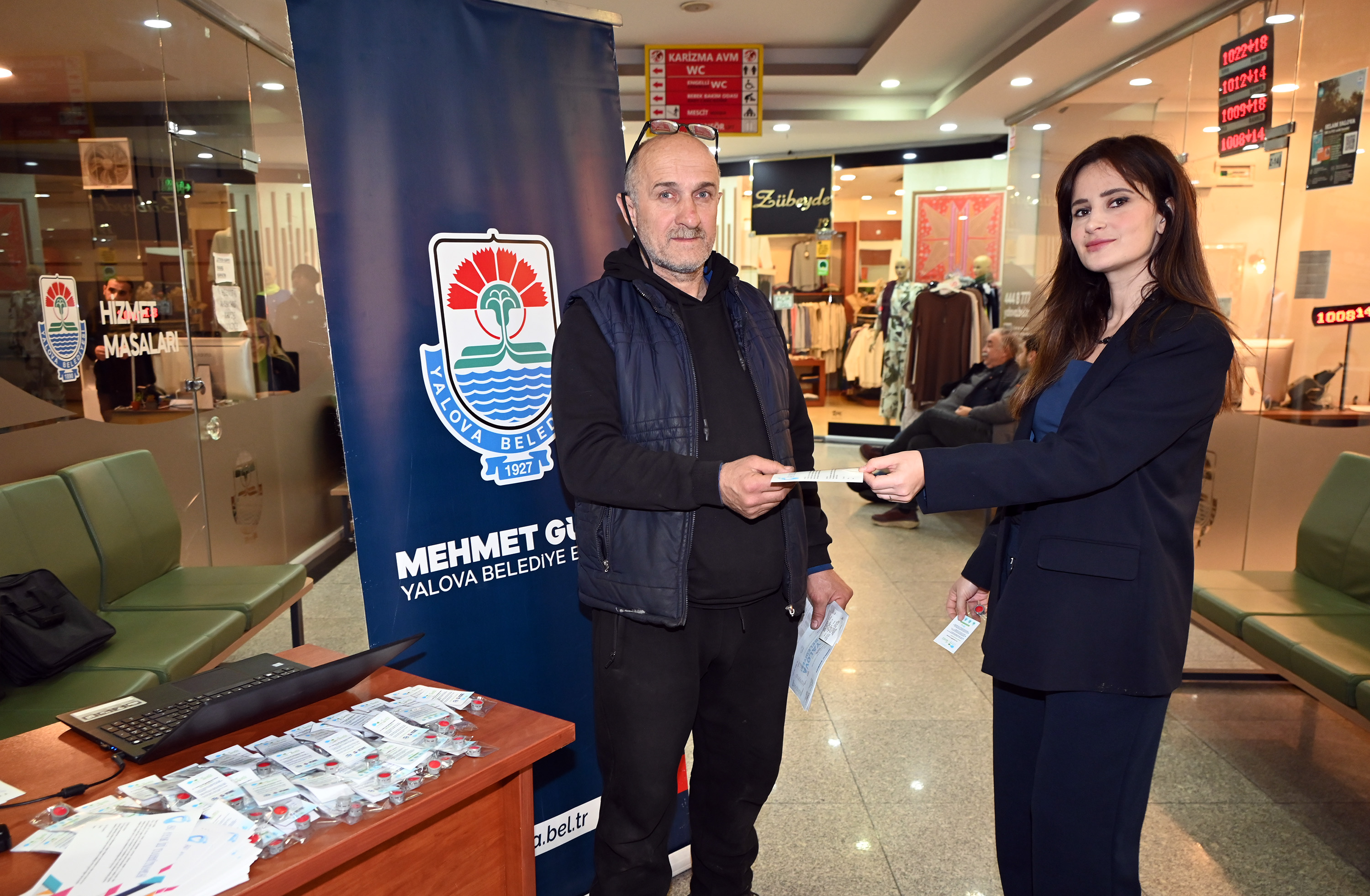 Yalova Belediyesi, veznelere işlem yapmak üzere gelen vatandaşlarına 'Su Ayak İzi Taahhütnamesi' imzalatarak, su tasarrufu sağlamak amacıyla musluk başlarıyla uyumlu özel aparatları hediye etti. Bu aparatlarla, vatandaşlar evlerinde %60'a varan su tasarrufu sağlayabilecekler.