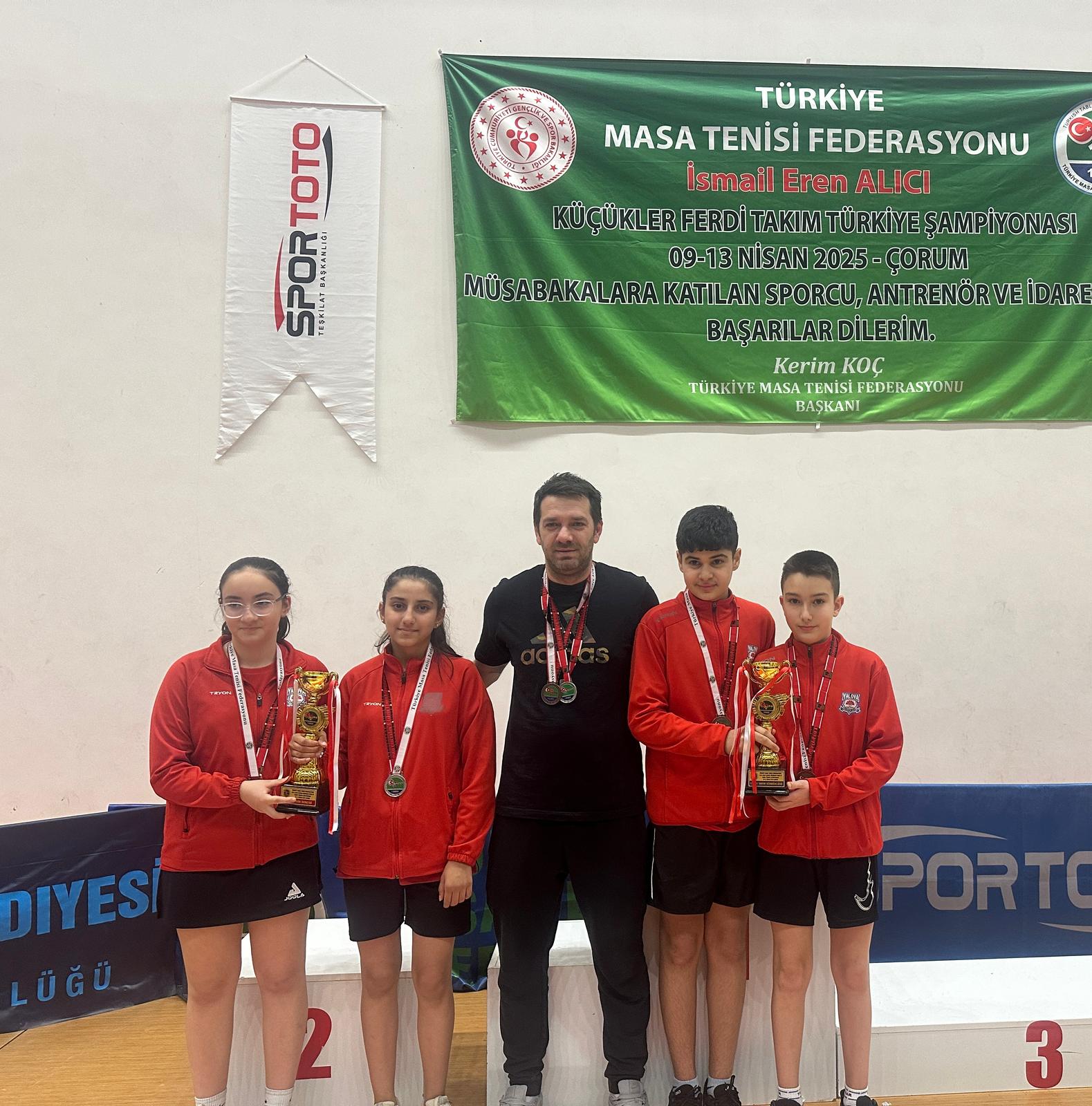 09-13 Nisan tarihleri arasında Çorum'da gerçekleştirilen Türkiye Masa Tenisi Federasyonu Küçükler Ferdi Takım Türkiye Şampiyonası'nda, Yalova Belediyespor’un kız ve erkek takımları dereceye girdi.
