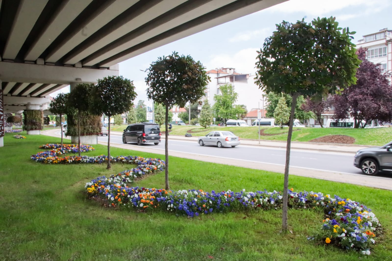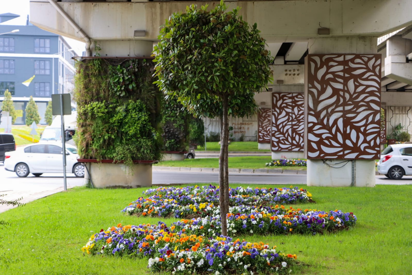 Mevsimine uygun çiçeklerle süslenen alanlar, vatandaşların ilgisini çekerken, estetik bir şehir görüntüsüne de katkı sağlıyor.