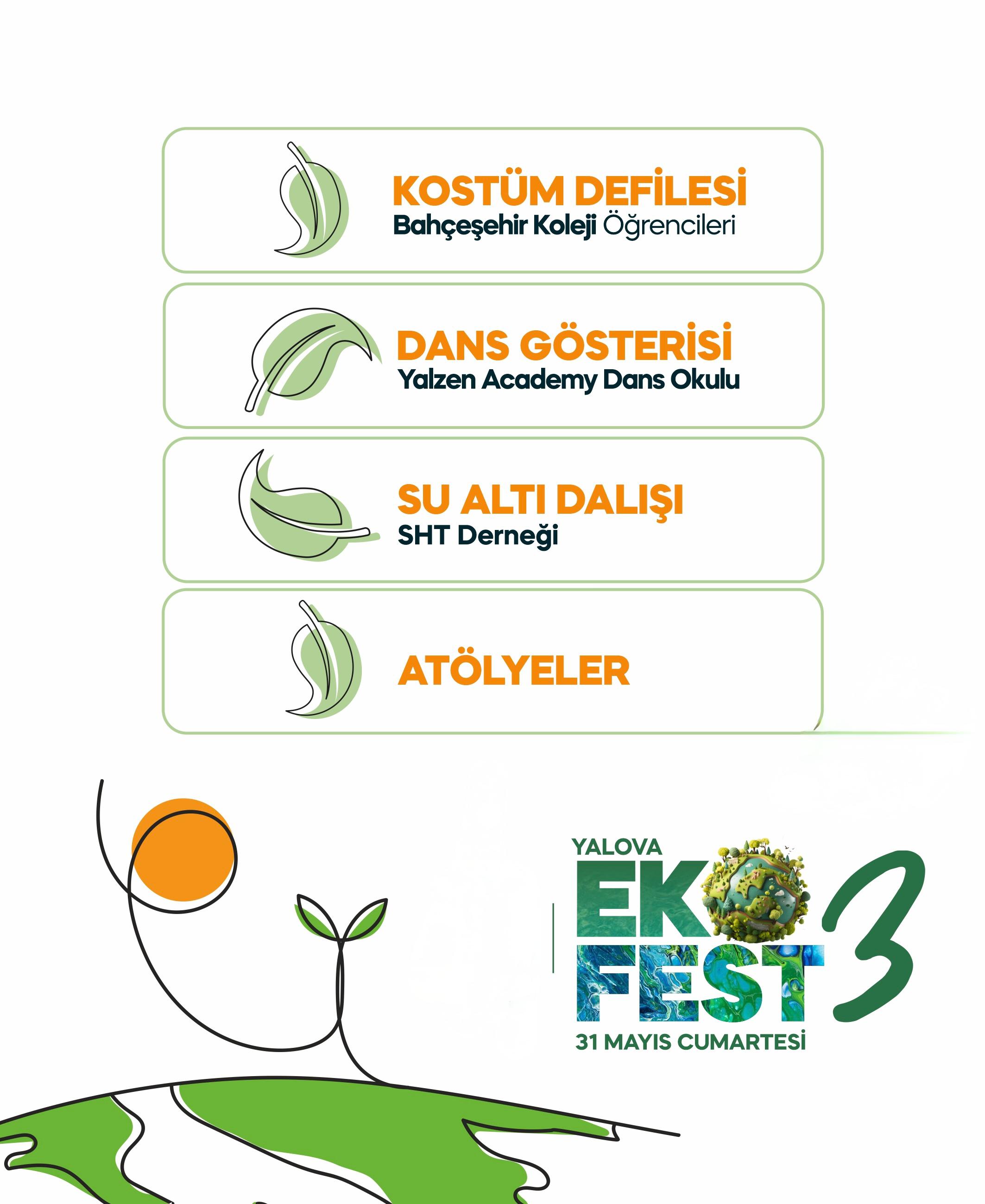 Yalova Belediyesi, doğa dostu bir gelecek için farkındalık yaratmaya devam ediyor. Bu yıl 3’üncüsü düzenlenecek olan Yalova Çevre Festivali - EKOFEST 3, 31 Mayıs Cumartesi günü Yalovalıları çevre bilinci ve eğlence dolu bir programla bir araya getirecek.