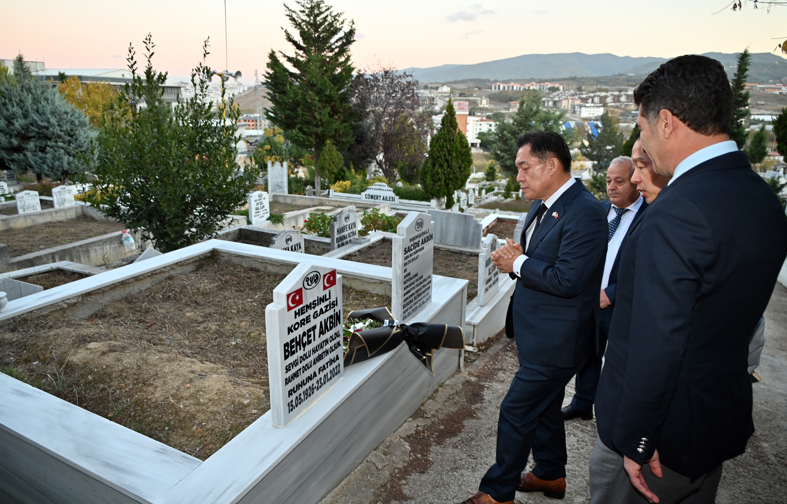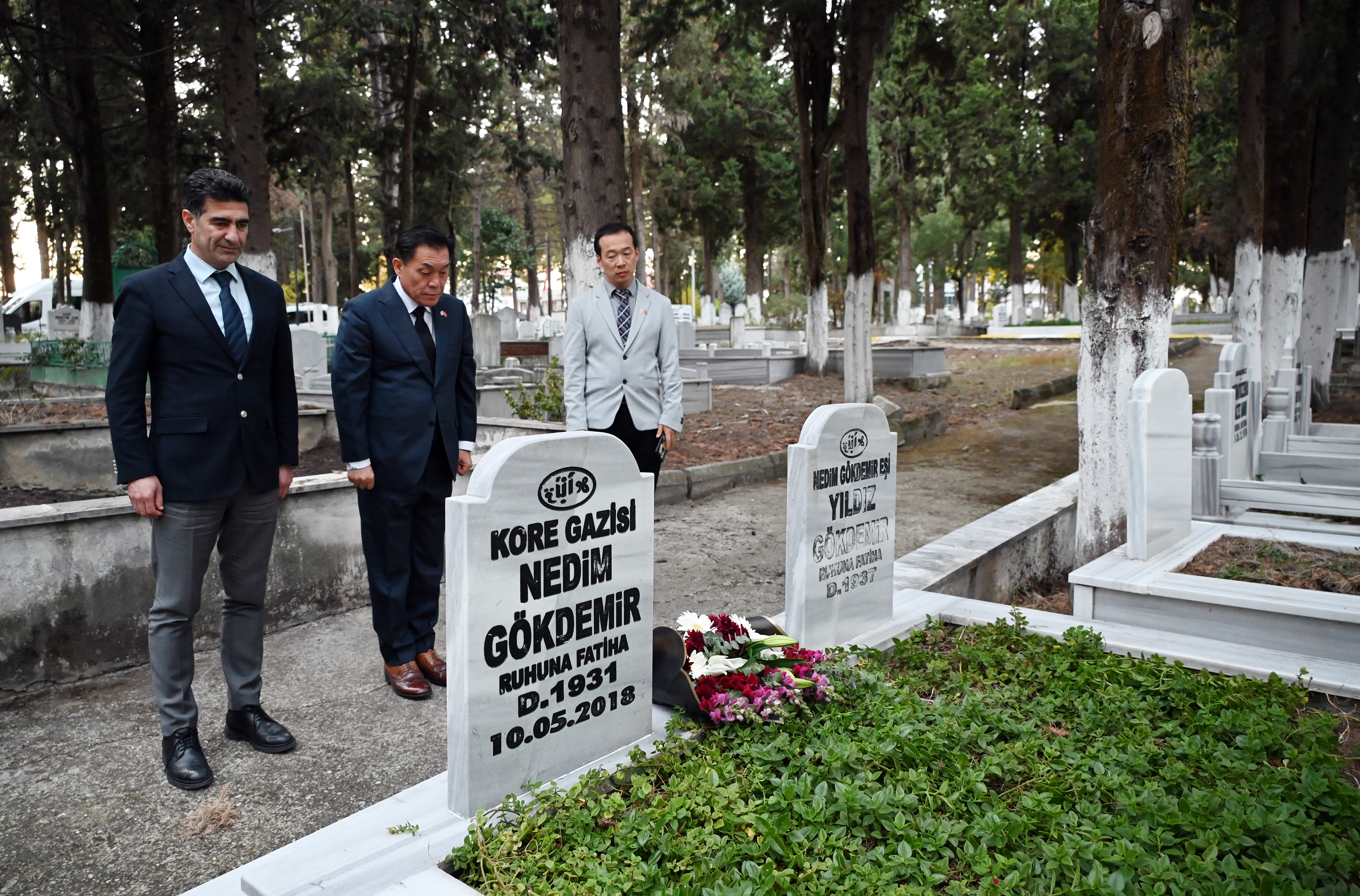 Suwon Belediye Başkanı Lee Jae Joon ve heyeti, ayağının tozuyla geldikleri Yalova’da ilk ziyaretlerini merhum Kore Gazilerinin kabirlerine yaptı. Koreli heyet, Başkan Yardımcısı Mesut Tutuğ ile birlikte Yalova Şehir Mezarlığı’nda merhum Kore Gazilerinin kabirlerini ziyaret ederek çiçek bıraktı. İki ülke ve iki şehir arasındaki tarihi bağların ve karşılıklı saygının daha da güçlenmesini simgeleyen bu ziyaret, takdirle karşılandı.