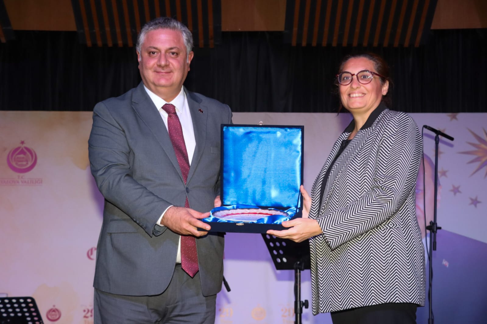 Akşam saatlerinde Raif Dinçkök Kültür Merkezi’nde Yalova Valiliği tarafından Cumhuriyet Resepsiyonu düzenlendi. Resepsiyonun ardından Özgecan Aslan Salonu’nda Emniyet ve Jandarma Teşkilatlarından oluşan koro konseri gerçekleştirildi. Konserde konuşan Yalova Belediye Başkanı Mehmet Gürel, “ Geçtiğimiz hafta belediyemiz tarafından düzenlenen Sunay Akın’ın bir programı vardı. Programın içeriğinda Sunay Akın, Cumhuriyet temalı ve o zamanın kız çocuklarının eğitim hakkı, girişleri, başarılı olmaları ve iş hayatına girerek kısaca eşit birer yurttaş olmalarını Cumhuriyete bağlayan bir konuşma yapmıştı. Bu konuşmadan yola çıkarak; “Cumhuriyet; eşitliğin, özgürlüğün ve kadınların aydınlık yarınlara uzanan cesur adımlarının adıdır.” diyerek kamuda görev yapan kadın yöneticilerimize günün anısına özel olarak hazırlattığımız plaketleri takdim ettik. Yalova’da görev yapan başta Sayın Valimiz Dr. Hülya Kaya olmak üzere tüm yöneticilerimize çalışmalarında başarılar diliyorum.” ifadelerini kullandı.