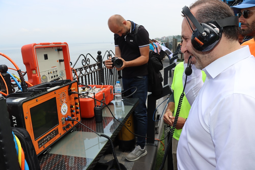 Saat 11.30 Yürüyen Köşk iskelesi Sualtı Bilinçlendirme Hareketi Derneği dip temizliği dalışı ve led ekrandan canlı yayın