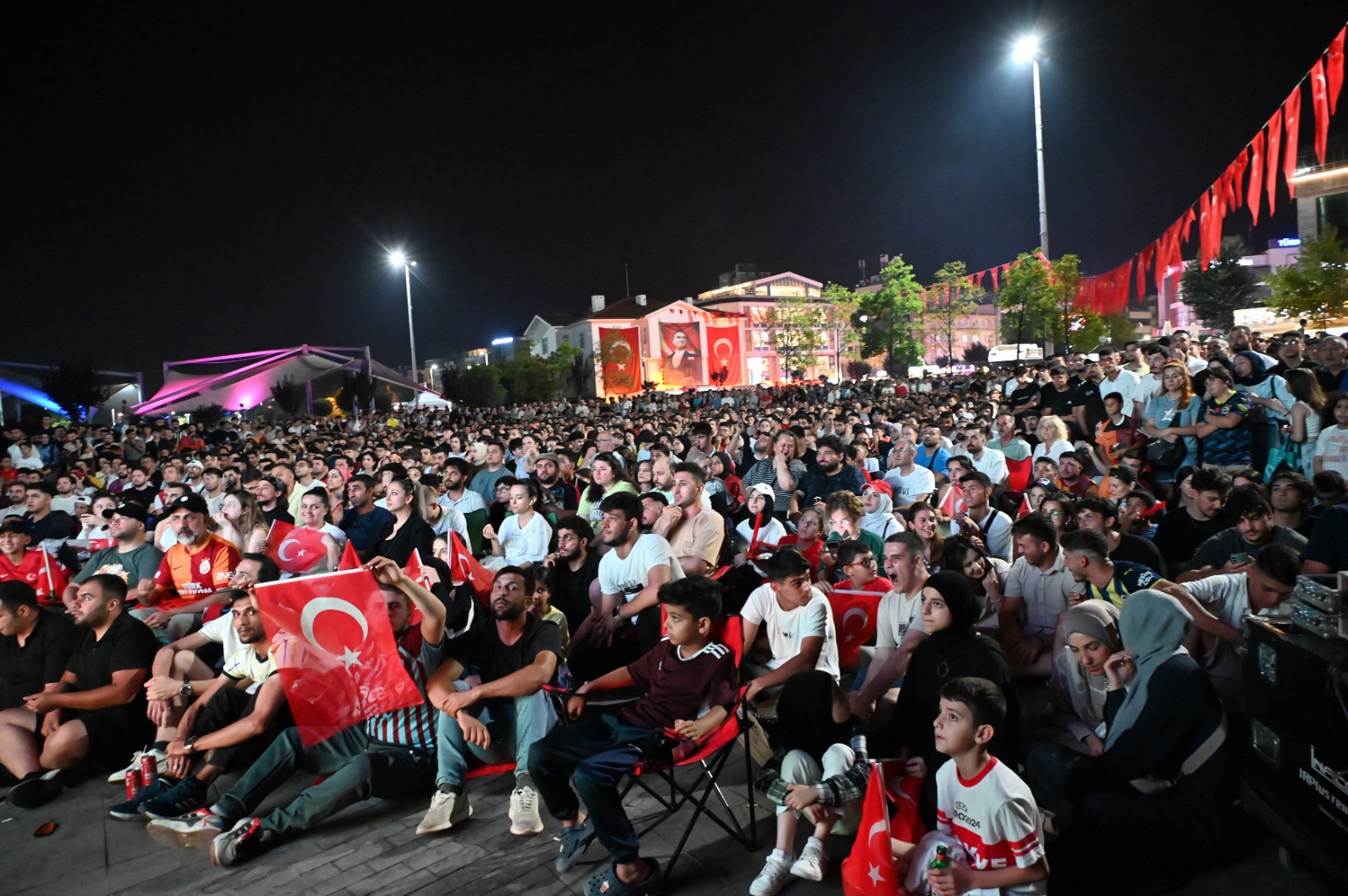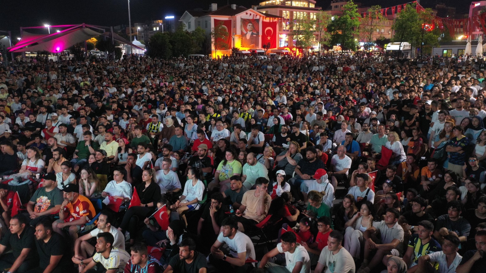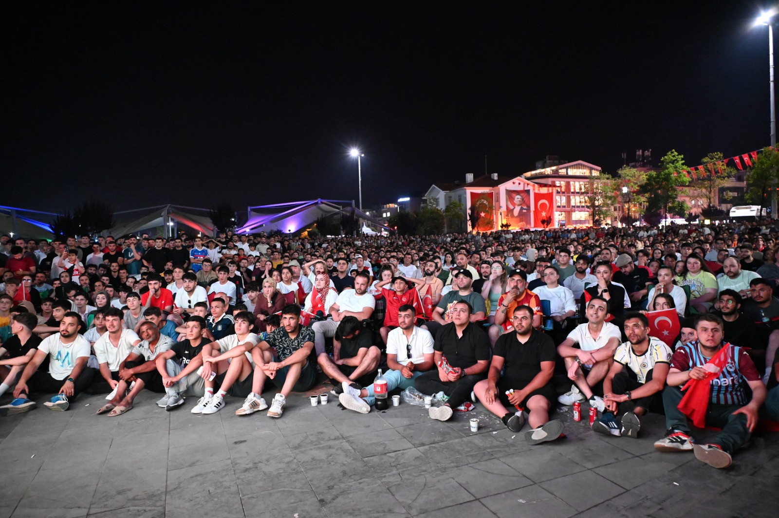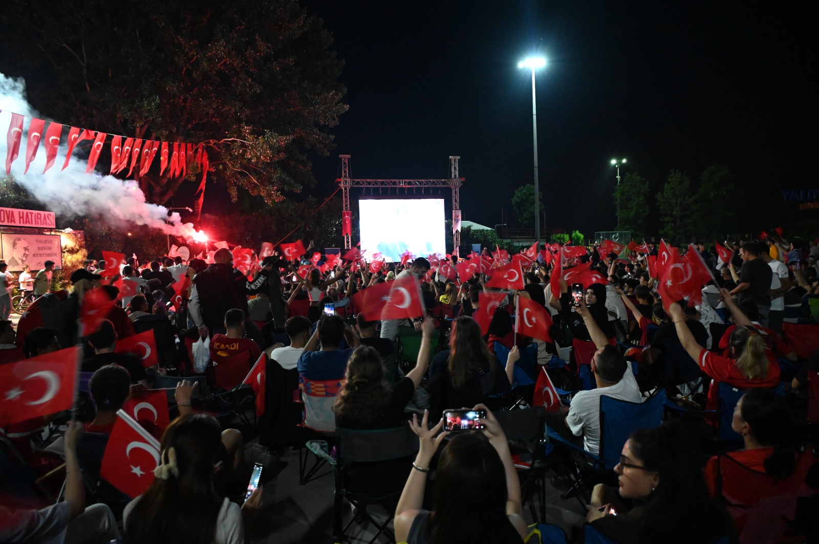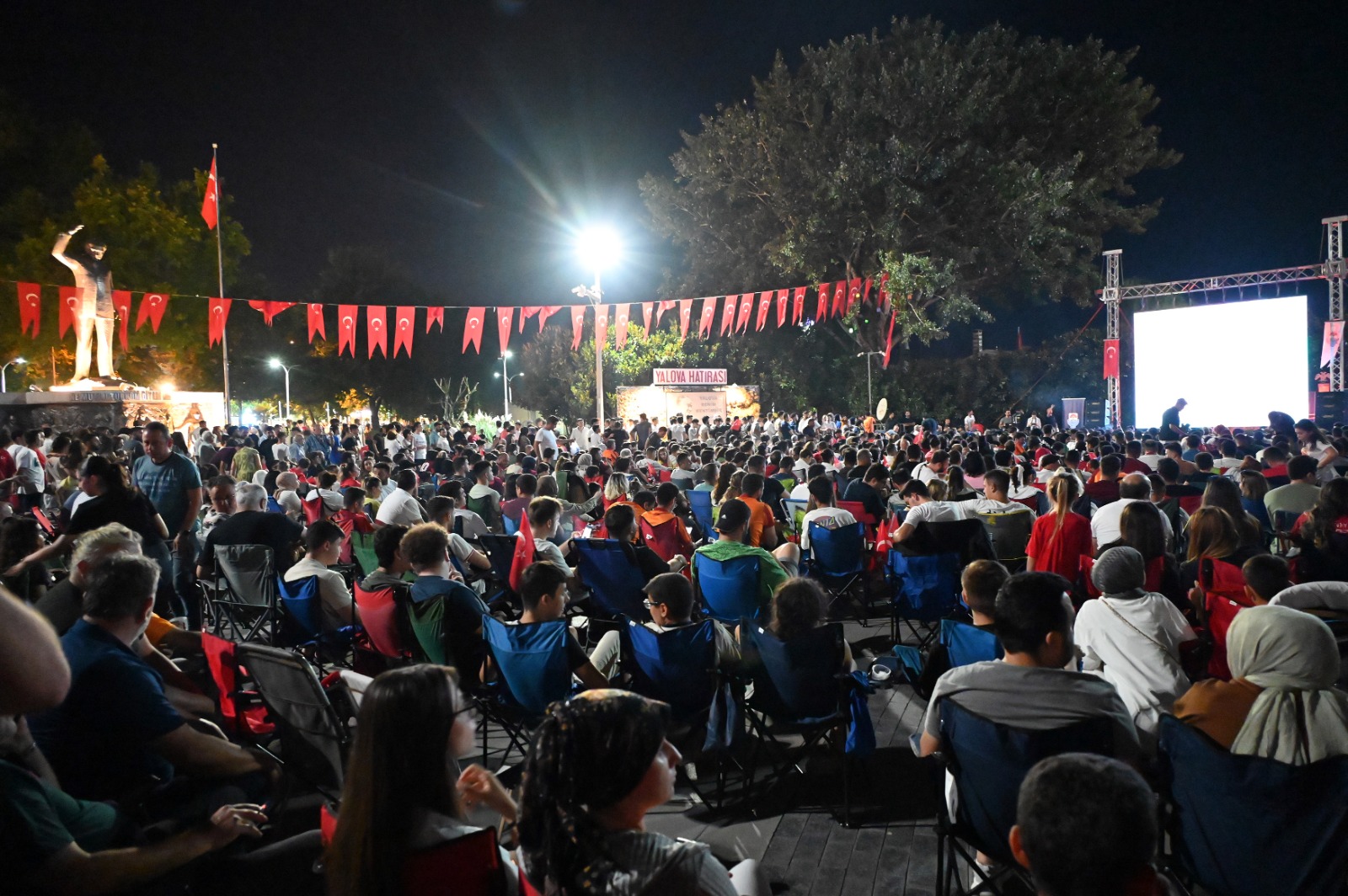 Yalova’da vatandaşlar, 2024 Avrupa Şampiyonası (EURO 2024) son 16 turunda karşı karşıya gelen Türkiye-Avusturya maçını, 15 Temmuz Demokrasi ve Cumhuriyet Meydanına Yalova Belediyesi tarafından kurulan dev ekrandan takip etti.