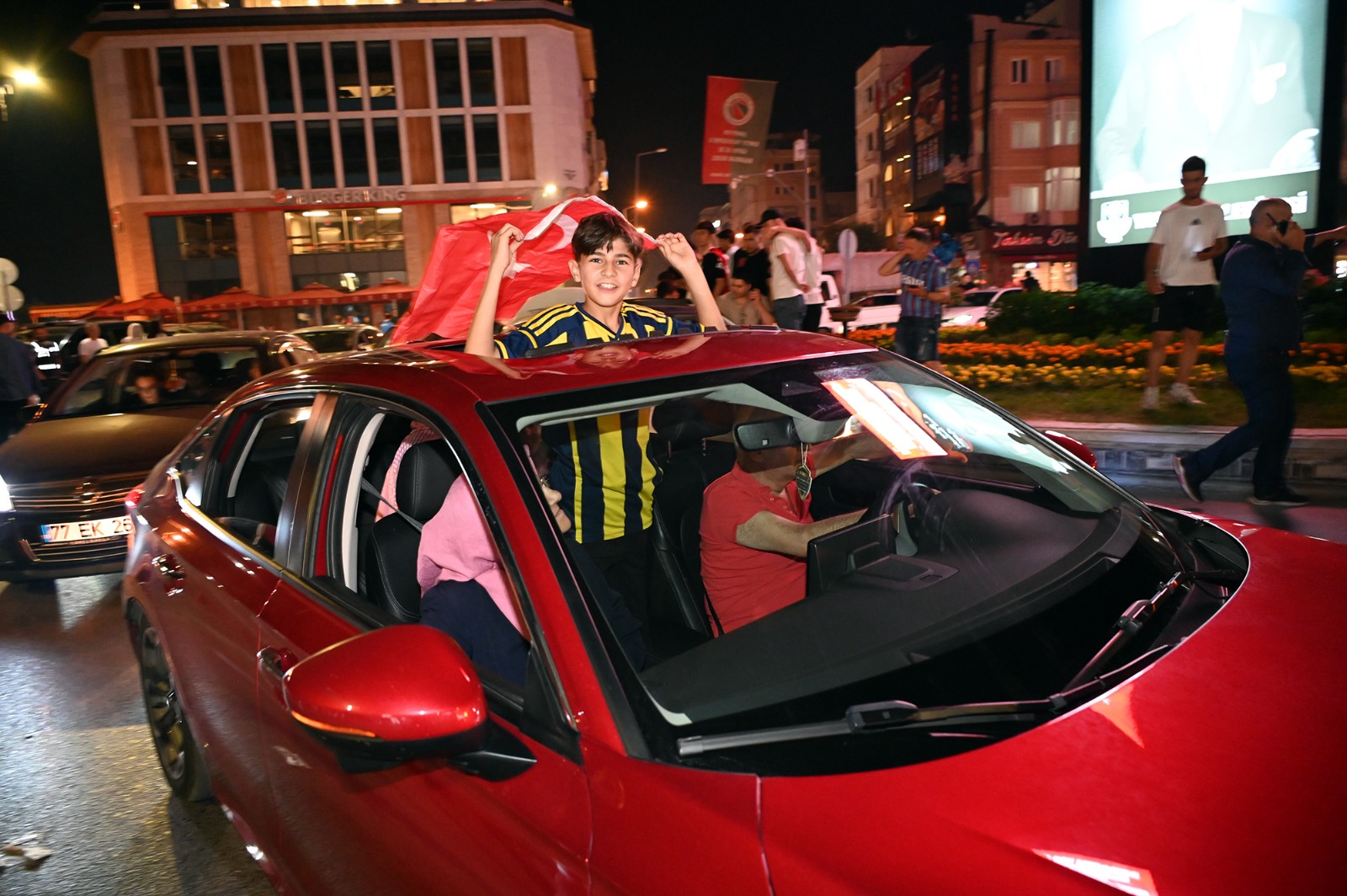 Yalovalılar, Türkiye’nin Avusturya ile oynadığı ve sahadan 1-2’lik skorla galip ayrılarak adını çeyrek finale yazdırdığı bu önemli maçı, Yalova Belediyesi tarafından meydanda kurulan dev ekranda heyecanla takip etti. Meydanda toplanan kalabalığın arasında yerini alan Yalova Belediye Başkanı Mehmet Gürel de bu heyecan dolu maçı hemşehrileriyle birlikte izledi. Başkan Gürel, maçın her anını büyük bir heyecan ve coşkuyla takip etti.