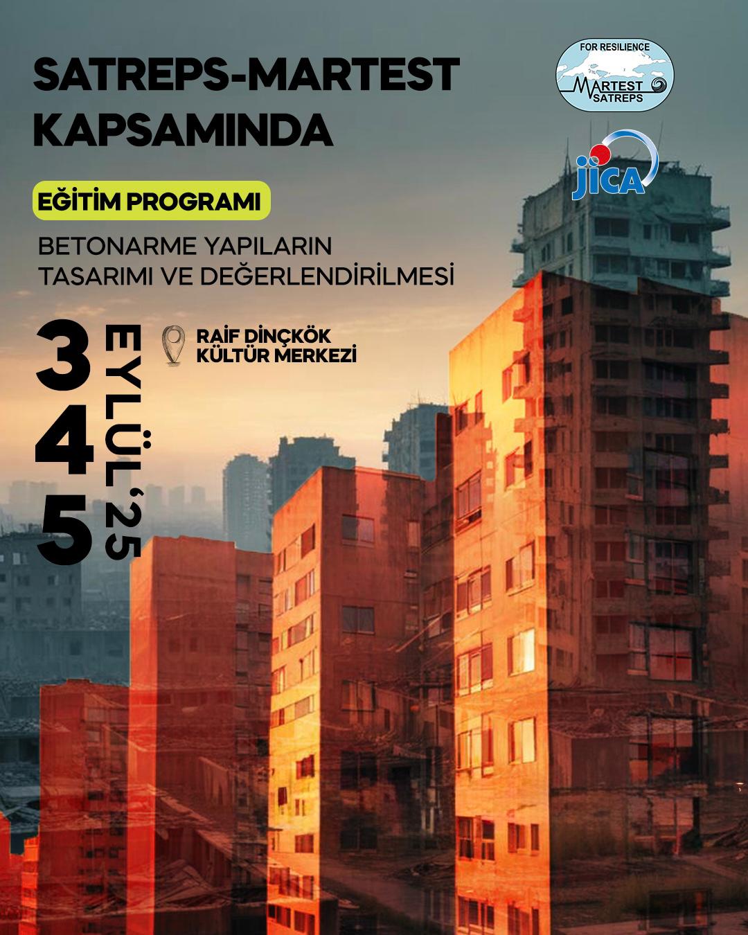 Ülkemizden Gebze Teknik Üniversitesi’nin Japonya’dan ise Kagawa Üniversitesi’nin yürütücülüğünü üstlendiği, Japonya Uluslararası İşbirliği Ajansı’nın (JICA) finanse ettiği, Yalova Belediyesi’nin proje partneri olduğu SATREPS-MARTEST projesi kapsamında 3-5 Eylül 2025 tarihleri arasında, Yalova Belediyesi Raif Dinçkök Kültür Merkezi’nde “Betonarme Yapıların Tasarımı ve Değerlendirilmesi” başlıklı eğitim programı düzenleniyor.