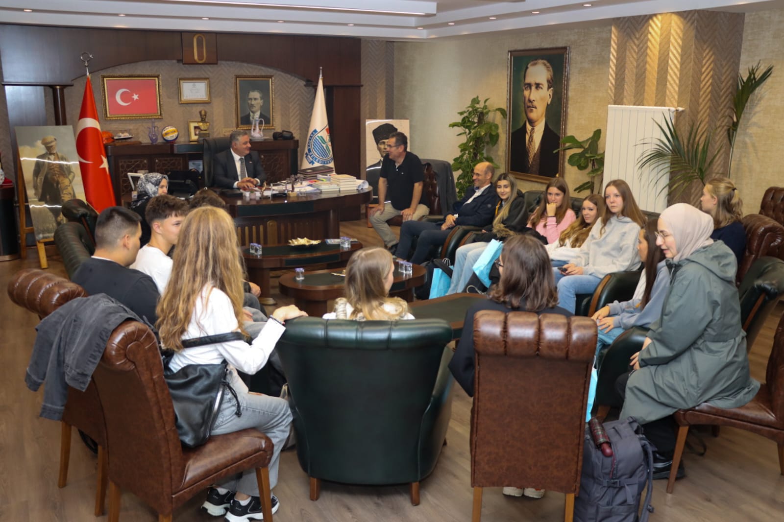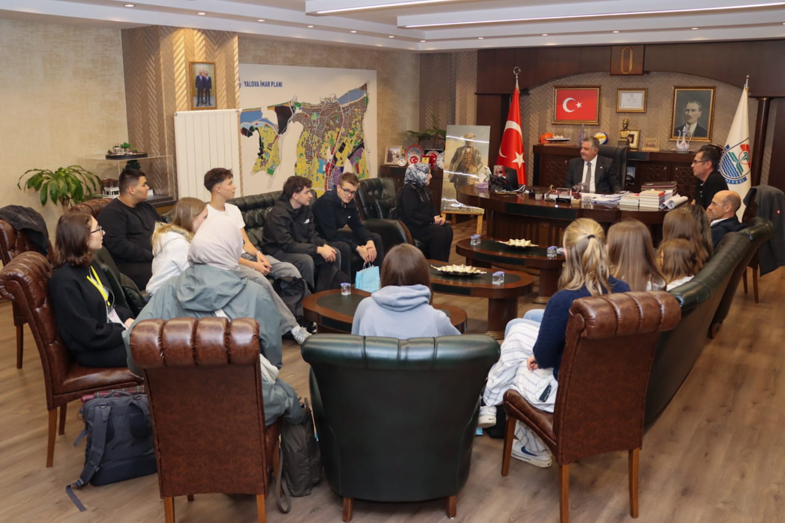 Yalova’nın kardeş şehri Rottenburg’dan gelen Lise 2. sınıf öğrencileri, Kardeş Şehir Yönetim Kurulu Üyesi Bülent Aydemir ve Okul Müdür Yardımcısı Stefan Seitzer eşliğinde Yalova Belediye Başkanı Mehmet Gürel’i makamında ziyaret etti.