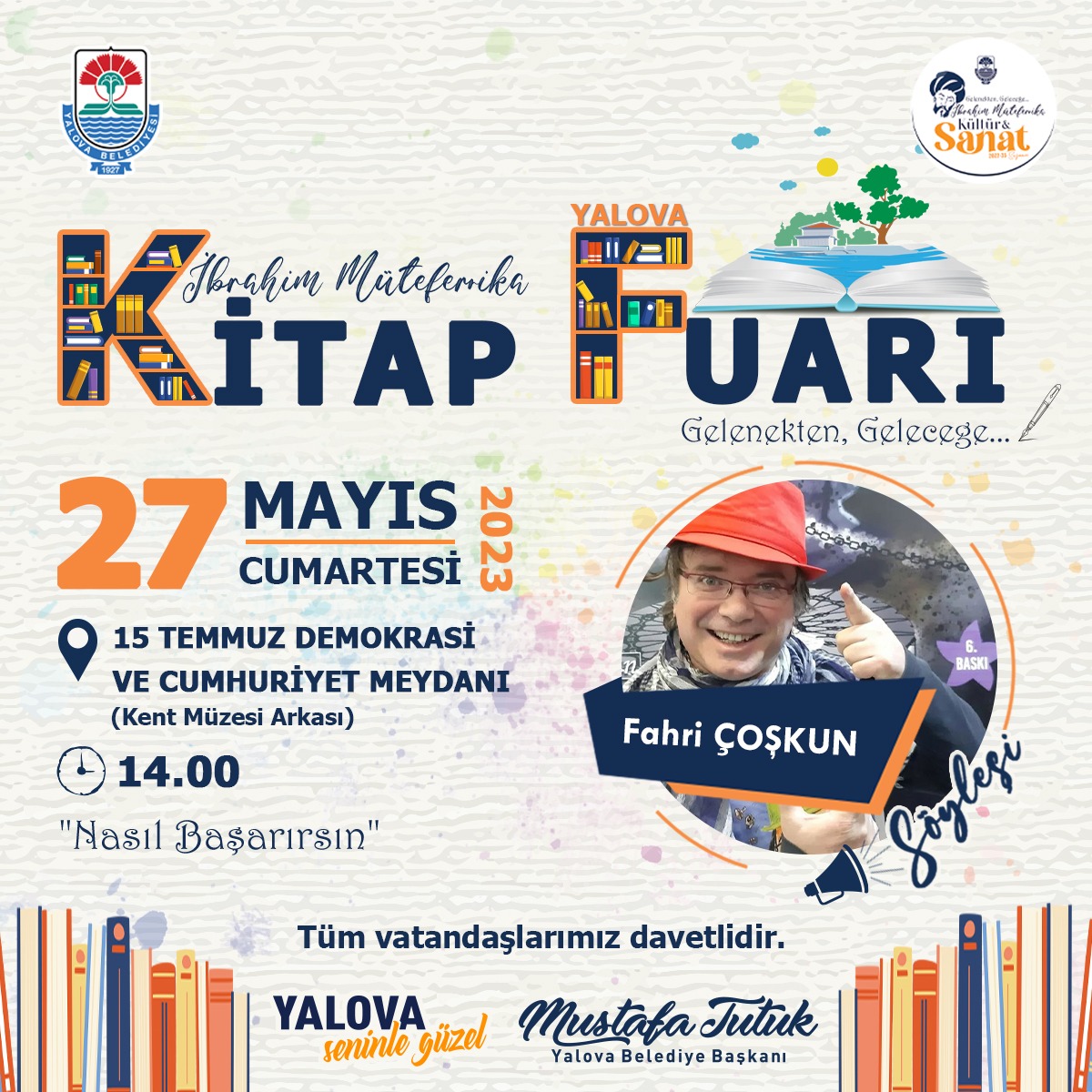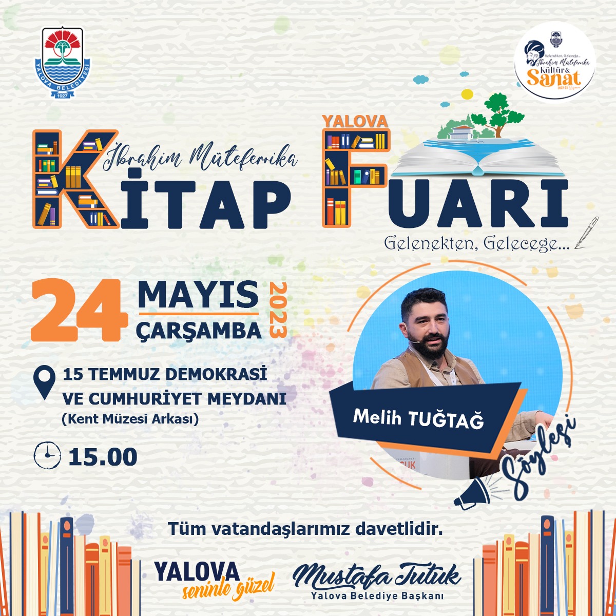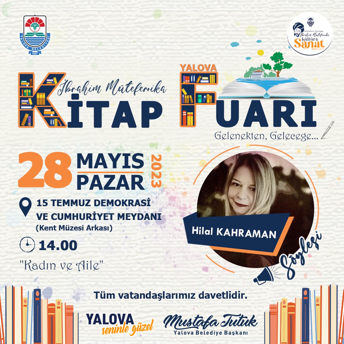 Yalova Belediyesi tarafından 15 Temmuz Demokrasi ve Cumhuriyet Meydanı’nda (Kent Müzesi arkası) kurulan Gelenekten Geleceğe İbrahim Müteferrika Kitap Fuarı kapsamında yazarlarla söyleşi programları devam ediyor.